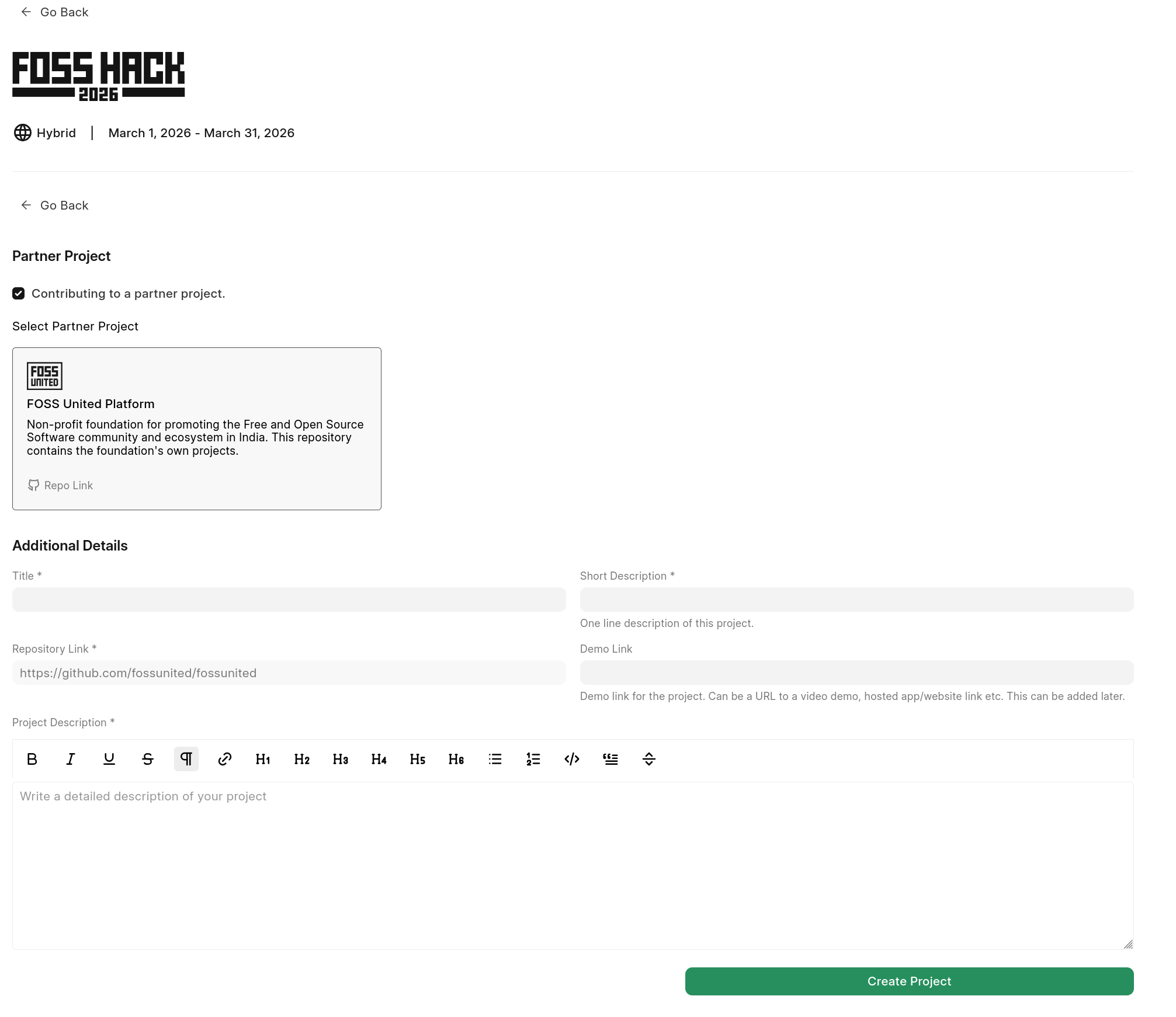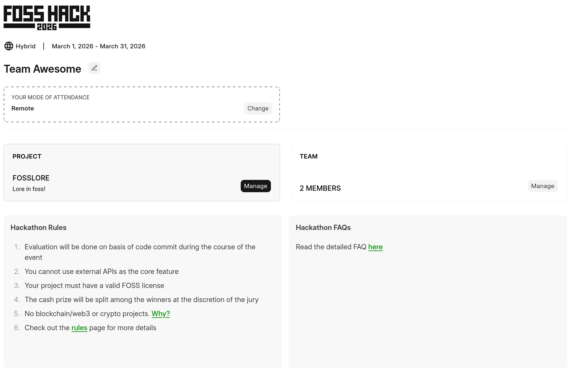 - You can view all projects submitted to a hackathon here: fossunited.org/hack/fosshack26/projects/all (change the permalink year/name)